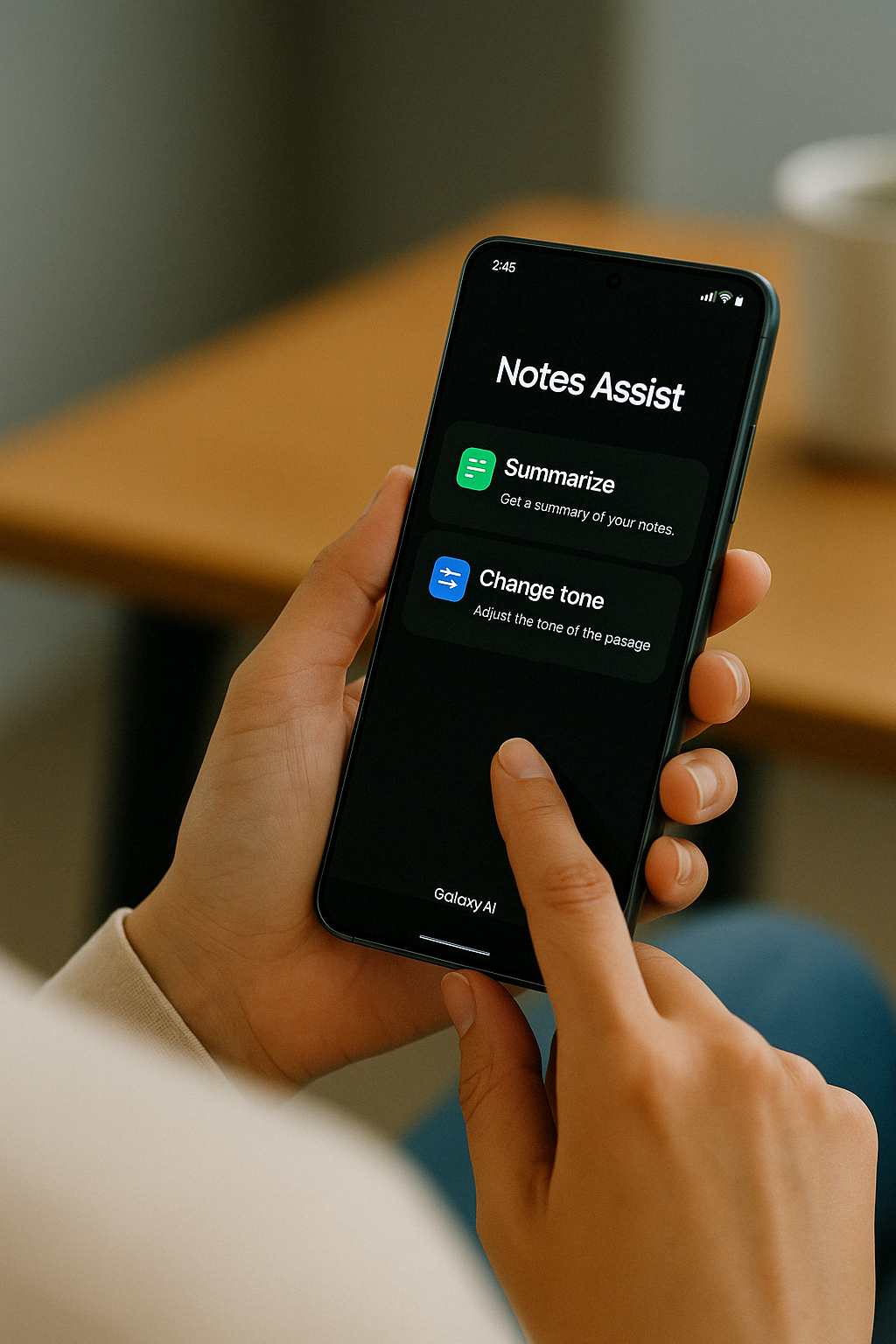 - 기능: 삼성 노트나 메시지 입력창에서 문장 재작성, 문법 보정, 톤 변경 기능 지원
