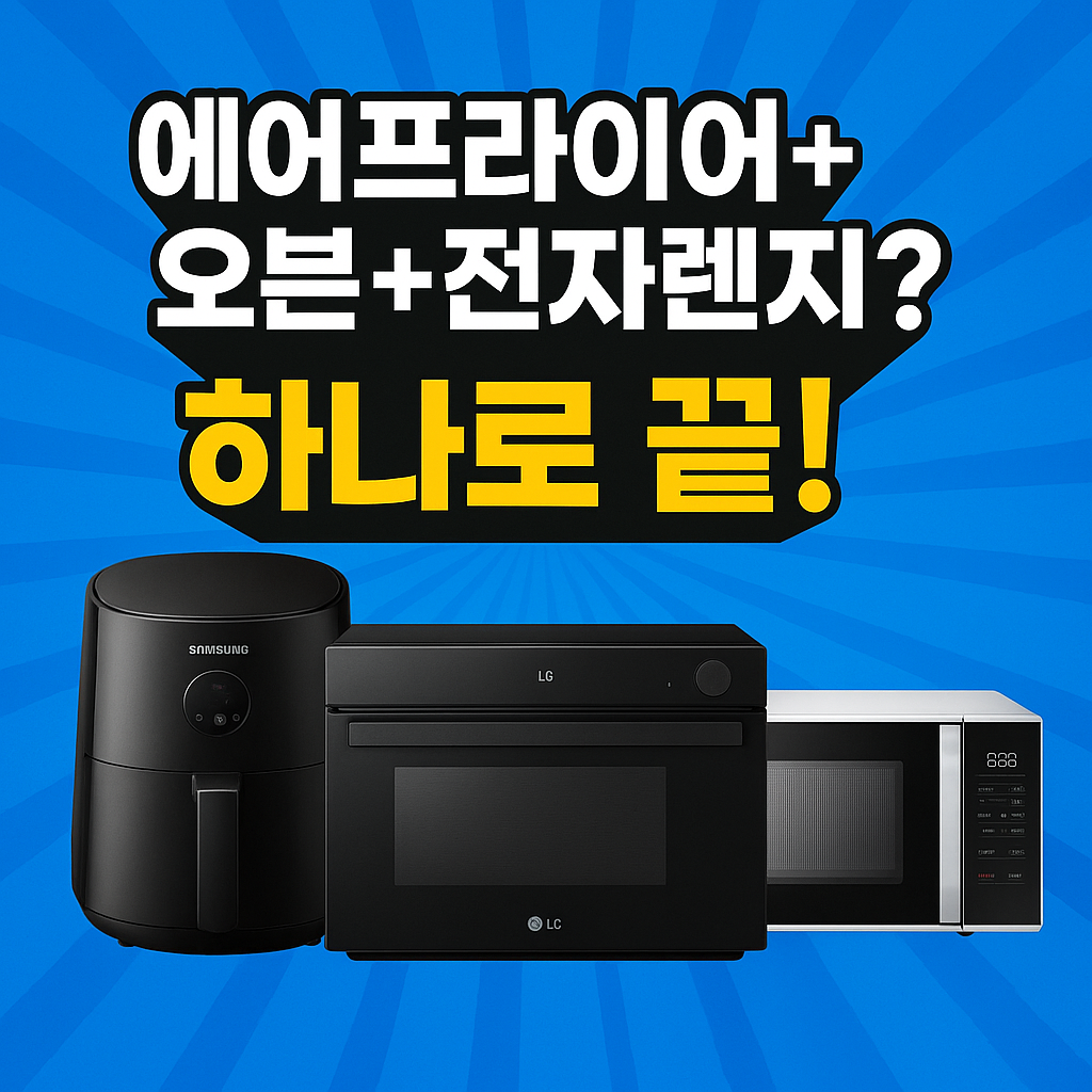 - 삼성 큐커: 그릴, 에어프라이어, 전자레인지, 토스터 기능이 통합. 복합요리 가능.
